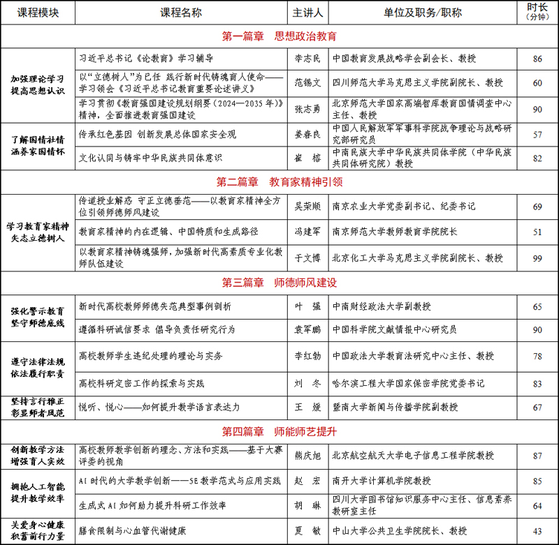 为深入学习贯彻习近平总书记关于教育的重要论述和全国教育大会精神,贯彻落实《教育强国建设规划纲要(2024—2035年)》《中共中央 国务院关于弘扬教育家精神加强新时代高素质专业化教师队伍建设的意见》,学校委托国家教育行政学院,以“坚持以教育家精神铸魂强师,打造支撑教育强国的高素质专业化教师队伍”为主题,面向全校教师组织开展2025年教师思想政治素质和师德素养提升专题网络培训。