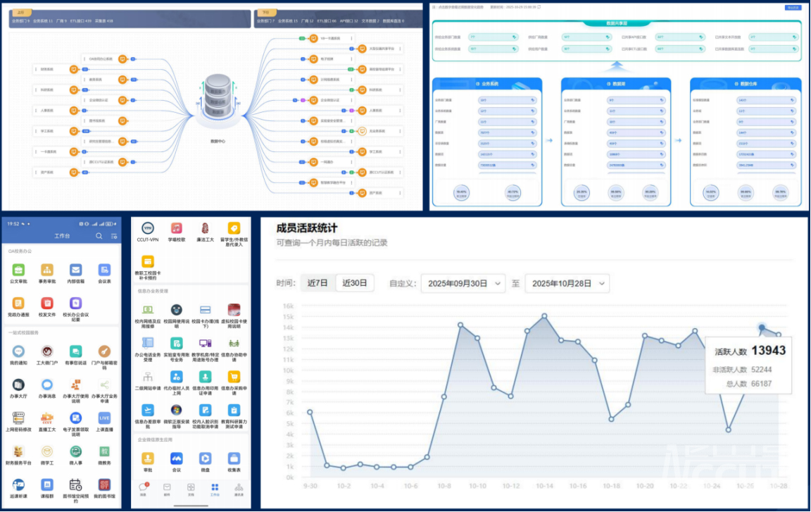 学校始终将提升师生获得感作为出发点,打造“企业微信+网上服务大厅”一体化服务平台,整合校园缴费大厅、微学工、微人事、微教务等高频服务,实现“一部手机办校务”。针对新工科建设需求,建成机械制造虚拟仿真实验室、工业互联网实训平台等教学设施,推动智慧教室与云端会议系统融合,支撑“线上线下混合式”教学模式创新。在保障数据安全的前提下,引入企业微信等成熟公有云SaaS服务,快速搭建移动应用生态,使校园服务响应速度提升70%。